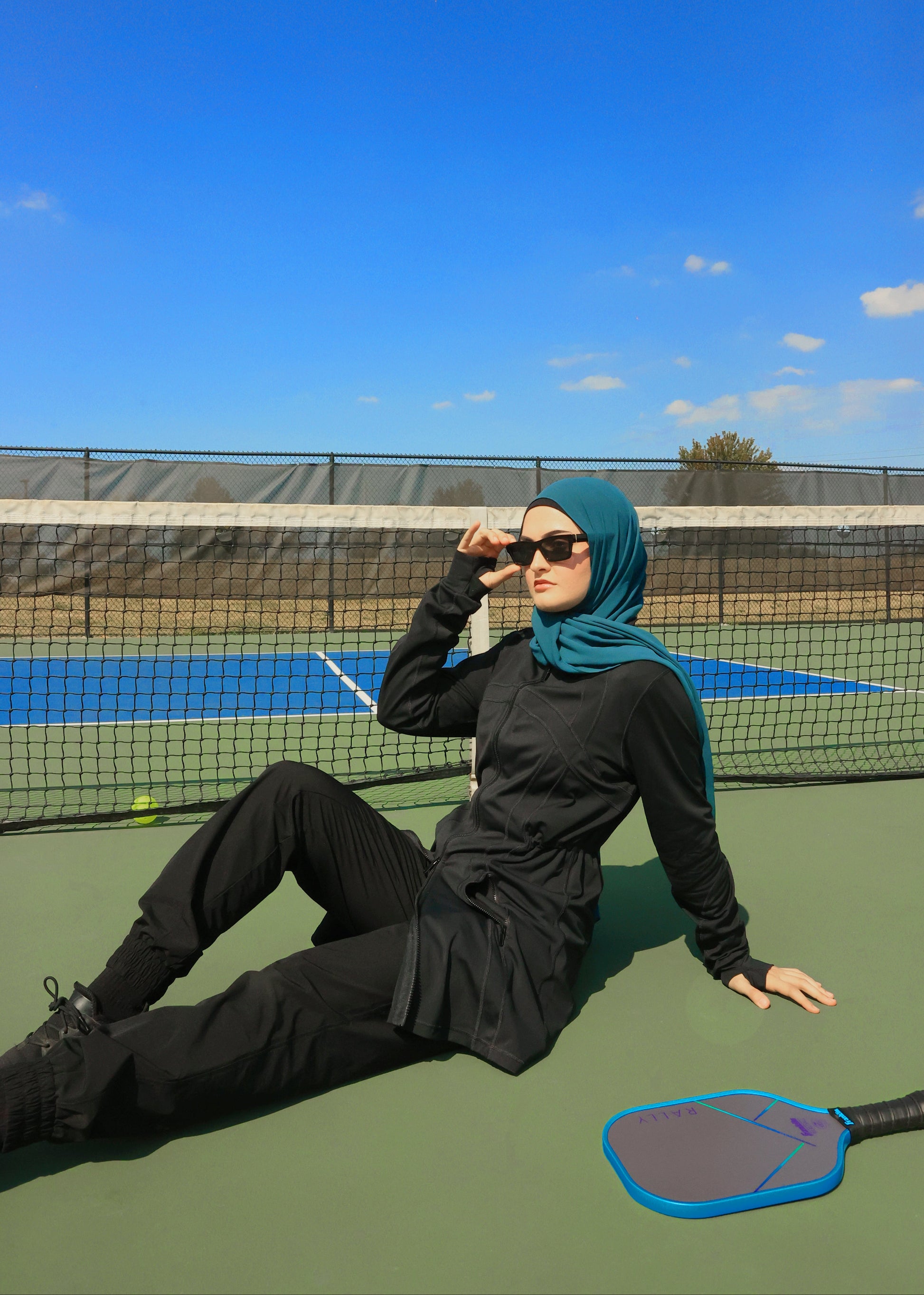 Designed for the woman who moves with purpose. Featuring a longline silhouette, soft-stretch fabric, and a cinched back waistband for a flattering shape, it’s perfect for layering before or after your workout or anytime you want to feel comfortable and confident in motion. With thumbholes for added comfort and coverage, clean stitching throughout the bodice, and a fit that moves with you, this jacket redefines modest athletic wear.